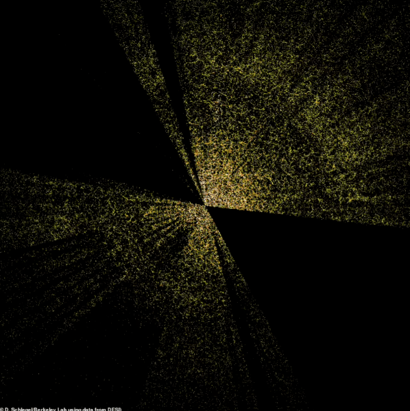 Данные DESI используются командой ученых под руководством Национальная лаборатория имени Лоуренса в Беркли (США) для "феноменально подробной трехмерной карты", которая поможет понять темную энергию.
