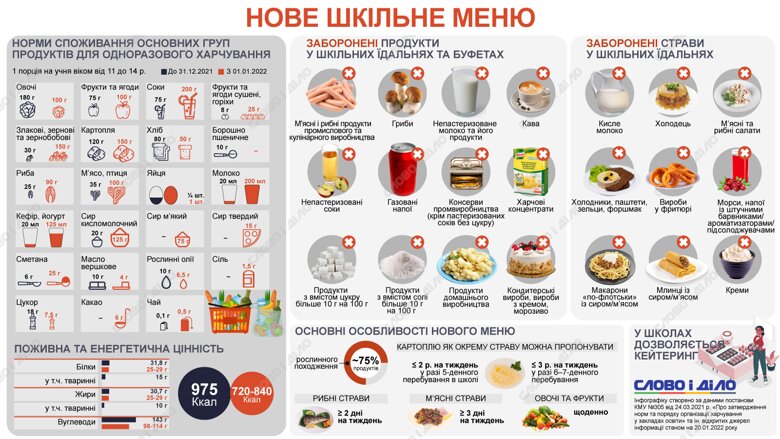 Все школы обязаны уменьшить количество сахара в 2-2,5 раза, а также количество хлеба на 1 прием пищи. В то же время, было решено увеличить количество фруктов, мяса птицы и молочных продуктов на 1 прием пищи.