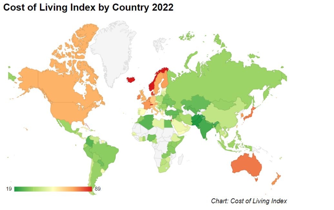 Исследовательский сервис Numbeo представил рейтинг стоимости жизни для 139 стран за 2022 год, передает FaceNews.ua. Украина оказалась в нем на 121 месте, свидетельствуют данные Numbeo.