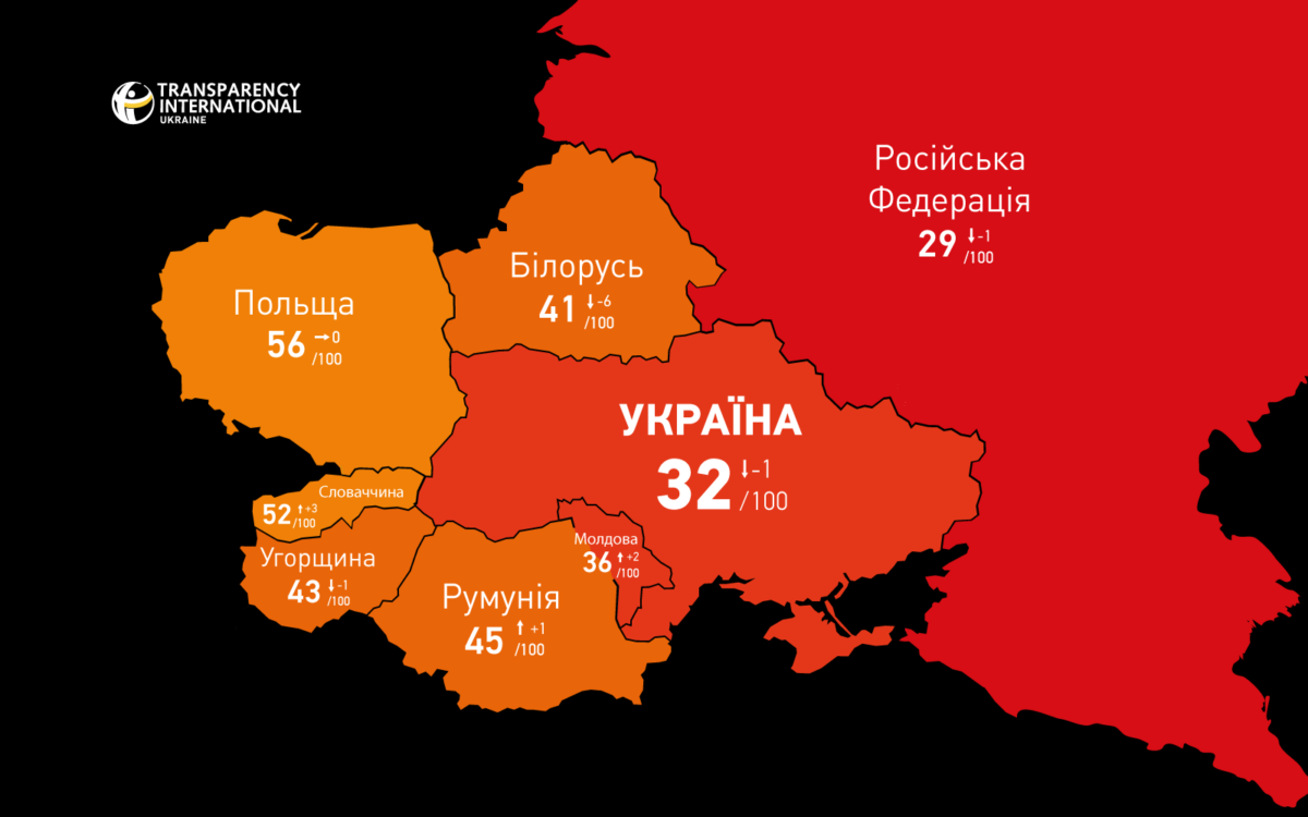 По результатам 2021 года Украина заняла 122 место в Индексе восприятия коррупции с показателем в 32 балла из 100 возможных, что на один балл меньше, чем год назад, передает FaceNews.ua. Об этом сообщает пресс-служба Transparency International Ukraine.