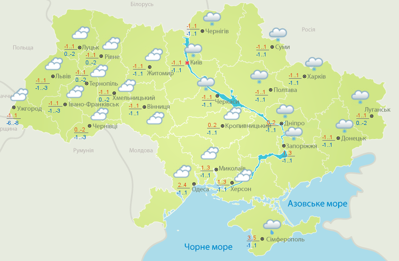 В центре тоже будет не так холодно. На Кировоградщине и Днепропетровщине – 0...+2.