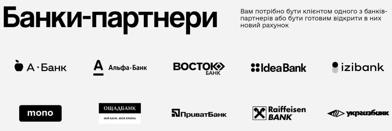 На сайте указано, что участие в программе по выдаче ковидной тысячи принимают десять банков: ПриватБанк, Monobank, Альфа-банк, А-Банк, Восток-Банк, Укргазбанк, Ощадбанк, Idea Bank, Raiffeisen Bank и izibanк. Постепенно будут присоединяться и другие банки.