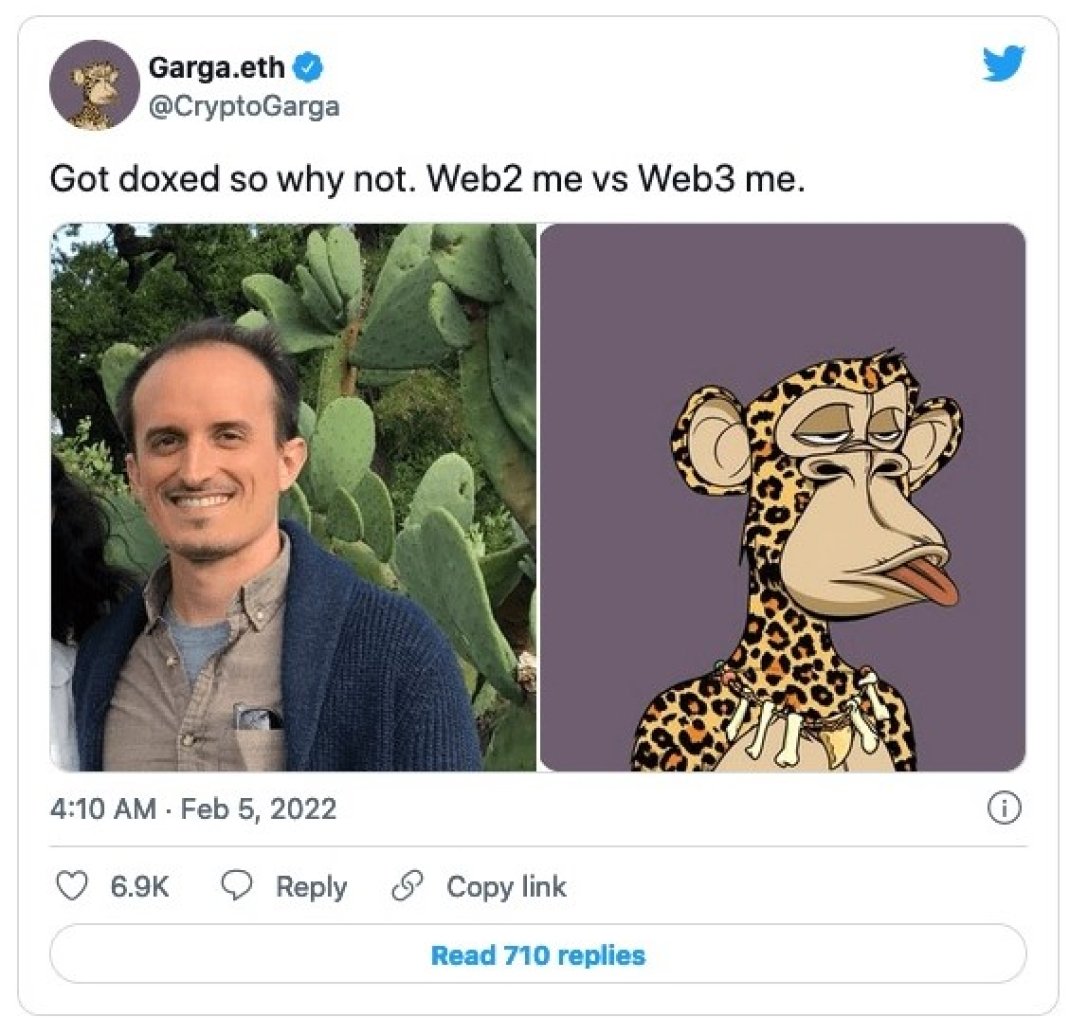 Американская интернет-медиа и развлекательная компания Buzzfeed раскрыла личность двух из четырех основателей популярной коллекции NFT от Bored Ape Yacht Club (BAYC) — Гордона Гонера и Гаргамеля, передает FaceNews.ua. В реальной жизни ими оказались 32-летний писатель Грег Солано и 35-летний Уайли Ароноу из Флориды. Об этом написала журналист Buzzfeed Кейт Нотопулос 5 февраля в своем Twitter.