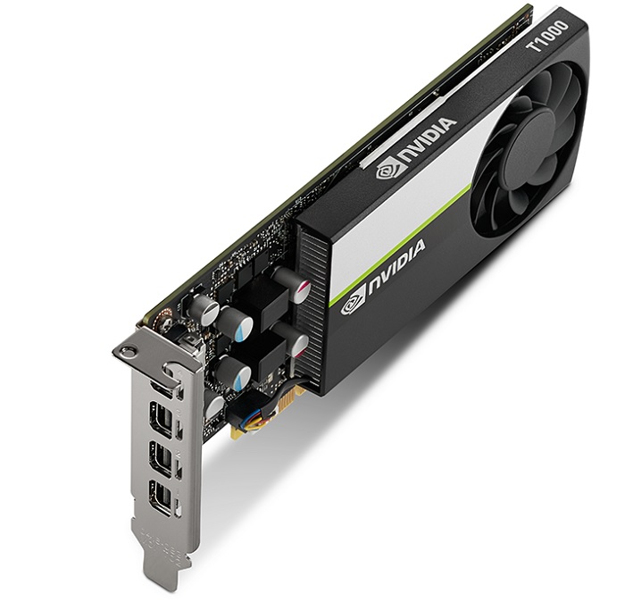 По своим параметрам Nvidia T1000 схожа с видеокартой начального уровня Nvidia GeForce GTX 1650 (выпущена в 2019 году): у нее 896 ядер CUDA, 4 или 8 ГБ видеопамяти GDDR6, производительность 2,5 Терафлоп. Nvidia T1000 выделяется среди игровых плат наличием 4 разъемов mini DisplayPort 1.4, небольшим энергопотреблением (максимум — 50 Вт, и она питается от разъема PCI) и компактными размерами (ширина в один слот, длина 15,24 см). Согласно данным Tom's Hardware, Nvidia T1000 — это одна из самых компактных видеокарт для подключения четырех мониторов 4K или двух мониторов 8K.