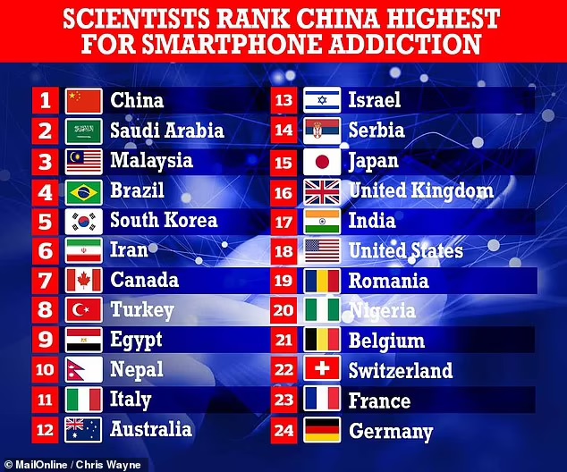 Как выяснили эксперты, граждане Китая (итоговый балл 36,18 из 60), Саудовской Аравии (35,73 из 60), Малайзии (35,43 из 60), Бразилии (32 из 60) и Южной Кореи (31,62 из 60) сильнее всех привязаны к смартфонам и проводят с ними большое количество времени. Среди европейских стран самую высокую позицию в рейтинге заняла Италия (11-е место с баллом 28,82), опередив Францию, Бельгию и другие страны. Канада заняла 9-ю позицию с баллом 31,11. В этом рейтинге нет Украины — она не приняла участия в исследовании.