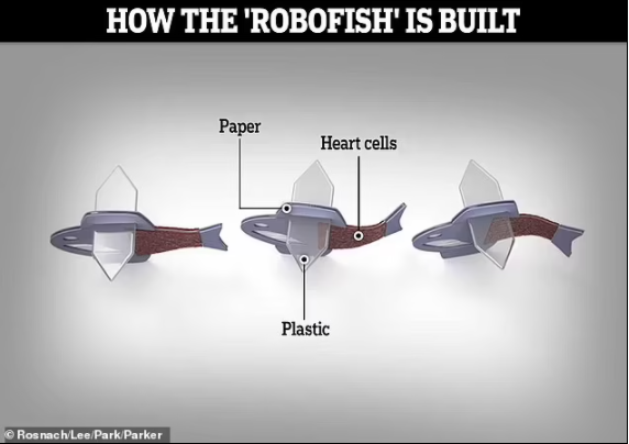 Команда создала свою биогибридную рыбу из кардиомиоцитов — клеток, ответственных за создание силы сокращения в сердце — полученных из стволовых клеток человека. Она имеет два слоя мышечных клеток, по одному с каждой стороны хвостового плавника.