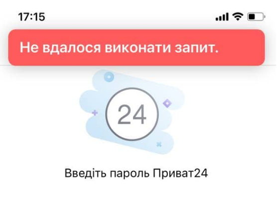 При попытке зайти в Приват24 через мобильное приложение появляется надпись "Произошла ошибка. Повторите попытку позже".