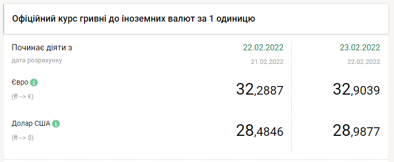 Национальный банк Украины на среду, 23 февраля, понизил курс гривны на 50 копеек по отношению к доллару и на 61 копейку к евро, передает FaceNews.ua. Об этом свидетельствуют данные на сайте НБУ.
