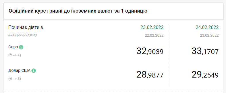 Национальный банк Украины на четверг, 24 февраля, понизил курс гривны почти на 27 копеек по отношению к доллару и на 27 копеек к евро, передает FaceNews.ua. Об этом свидетельствуют данные на сайте НБУ.