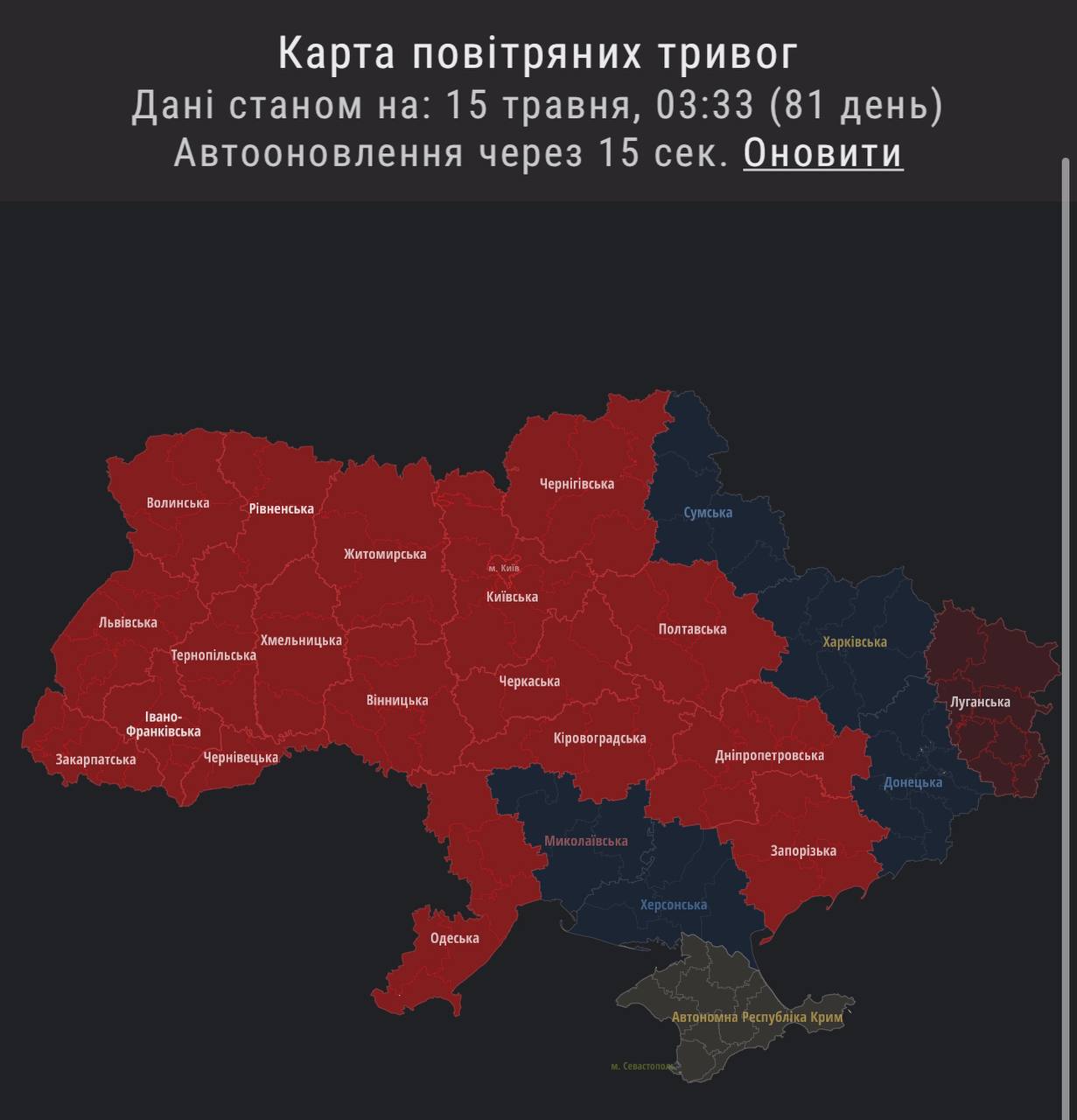 Добавим, что сегодня ночью почти по всей территории Украины звучала воздушная тревога.