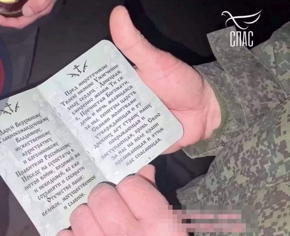 Російська православна церква підготувала для окупантів, які вбивають українців, молитвеники із молитвою про диктатора Володимира Путіна. У тексті його величають "архістратигом". Як повідомляє моніторинговий проект "OSINT Бджоли", пропагандистські молитви роздають усім окупантам у зоні бойових дій.