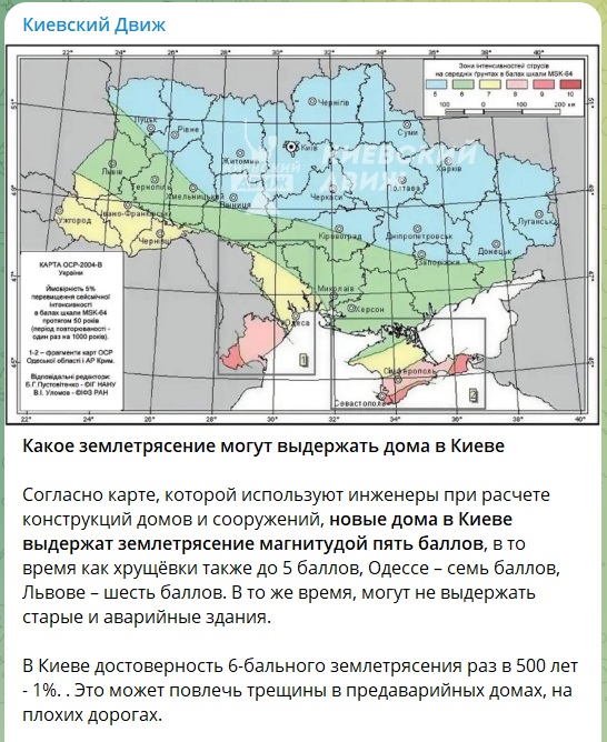 "Безумовно може бути (сильний землетрус у Києві, — Ред.). Усе залежить від того, про який землетрус ми говоримо. Зокрема, ці землетруси з вогнищами в зоні Вранча, з джерелами в зоні Вранча, яка на території Румунії. Від цих землетрусів сейсмічні хвилі підходять й викликають коливання і у Києві, і в Москві, і у Санкт-Петербурзі. Люди пам’ятають сильні землетруси, які були в зоні Вранча у 1977, 1986 та 1990 роках. Пам’ятають, як у Києві з високих будинків мешканці вибігали на вулицю, бо боялися, що їхні будинки можуть зруйнуватися", — нагадав Кендзера.