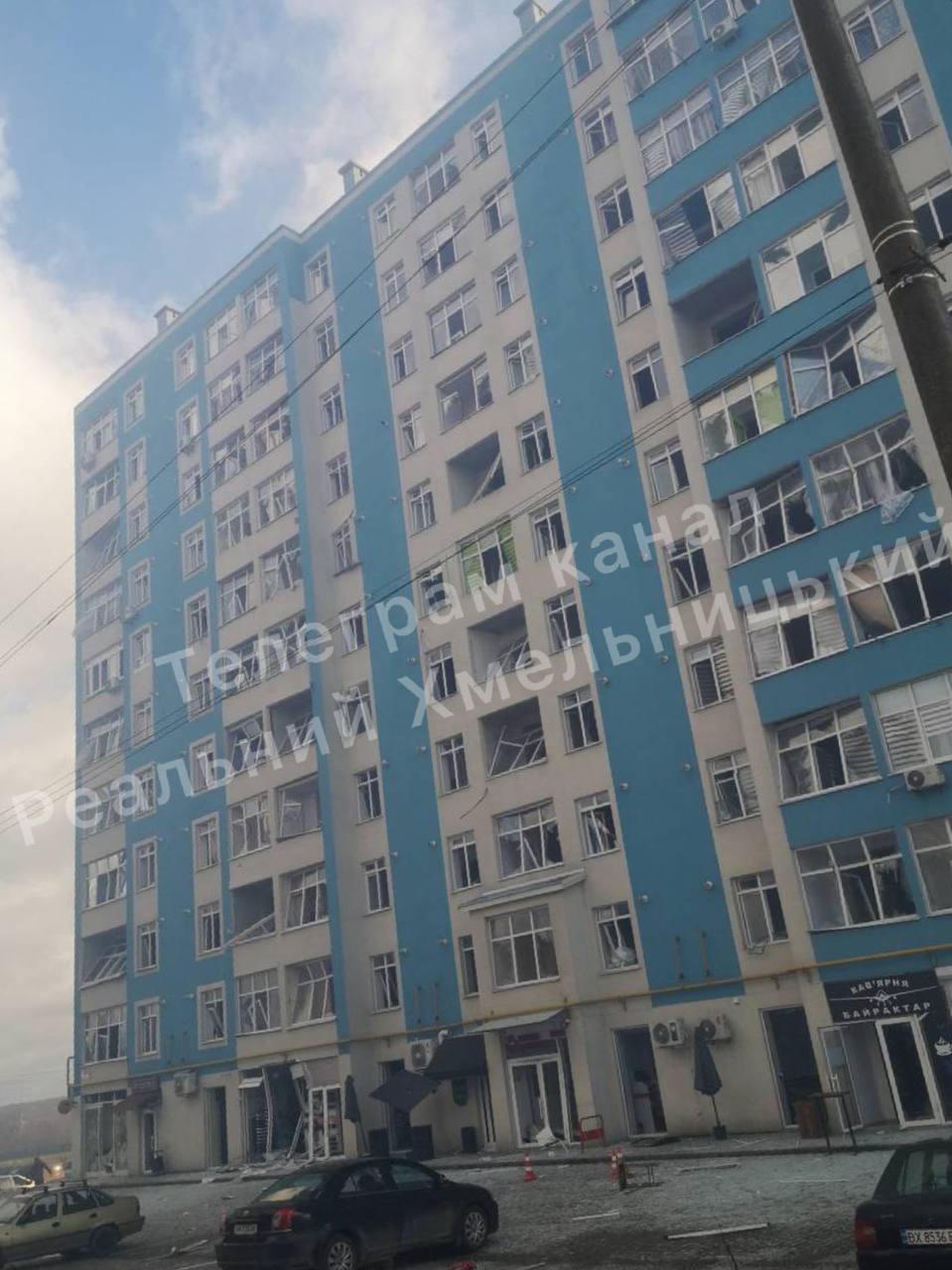 "Пошкоджені три навчальні заклади, близько десяти пошкоджених багатоповерхівок, десь півтисячі вікон і балконів знищено", - розповів також мер Хмельницького Олександр Симчишин в ефірі телемарафону.