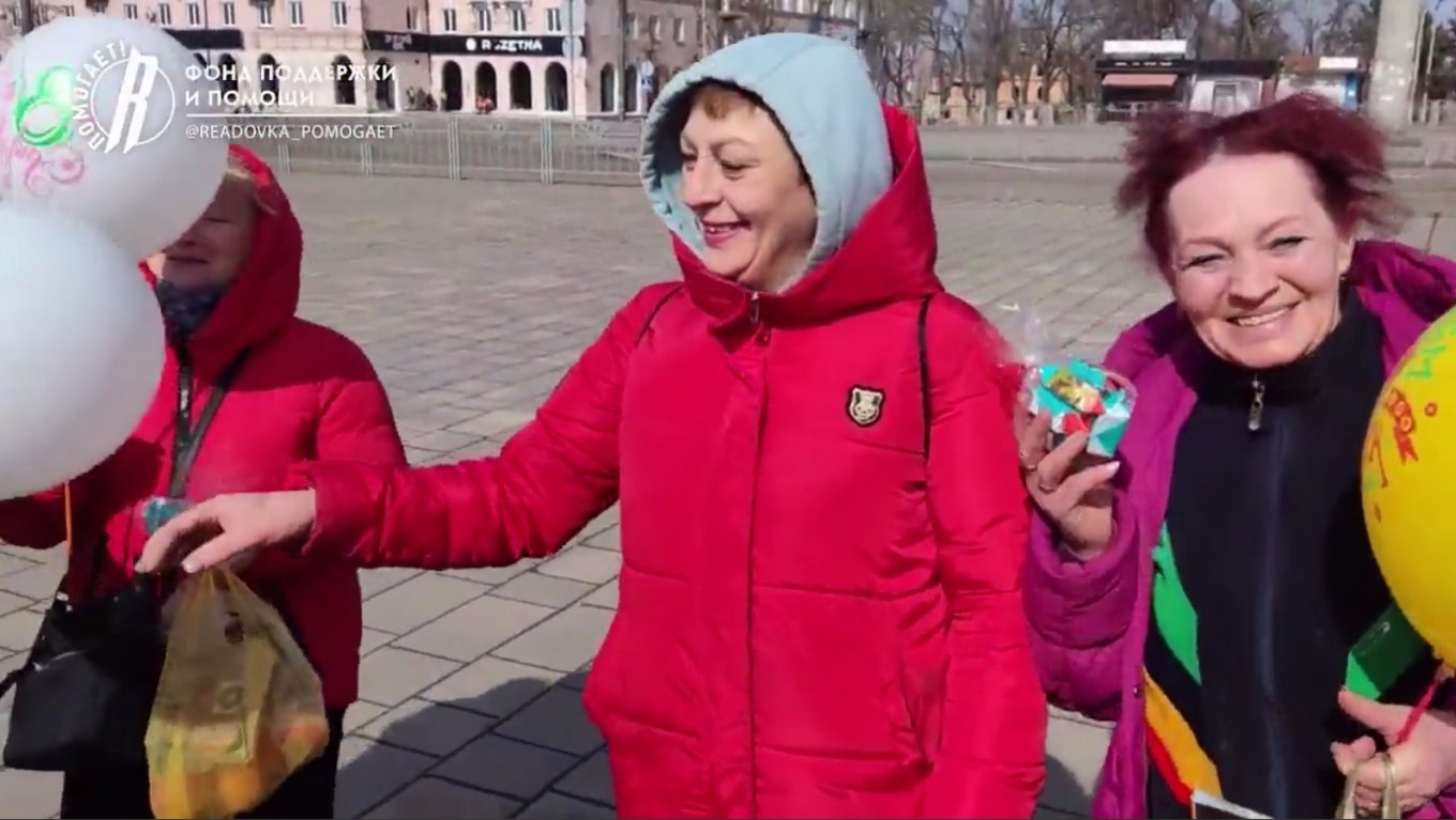 Російські "спасітєлі" сьогодні в окупованому Маріуполі вітали дівчат і жінок з 8 березня. Вони роздавали повітряні кульки і цукерки. Гірко дивитись, як жінкам "кидають кістки", а на задньому фоні - випалені будинки. При цьому для кадру пропагандисти вибрали тих, хто беручи подачку посміхається і каже: "Спасібо большоє!".