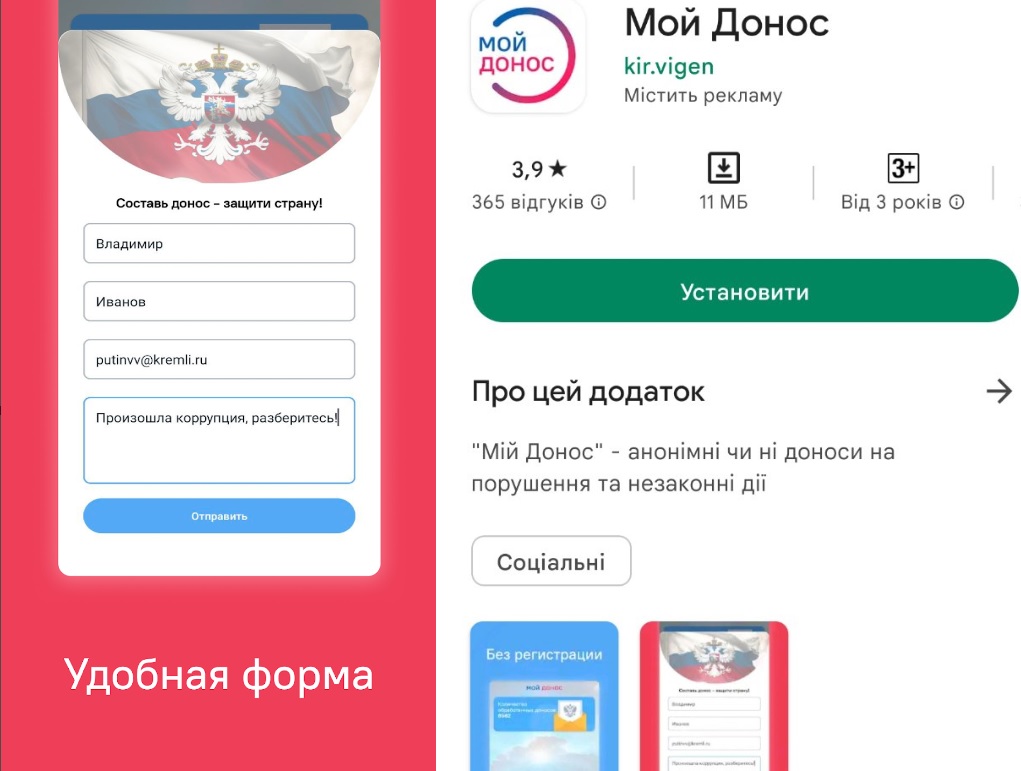 Як відомо, для донощиків у Росії навіть розробили додаток "Мой донос", розробники виклали його на Google Play. Українці у соцмережах жартують, що для російських сексот лишається розробити додатки "Є-тюрма" та "Мой ГУЛАГ", а "ВКонтакте" перейменувати на "ВБутырке".