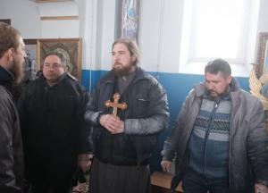 Повідомляється, що група людей змогла зайти через бічні двері храму. За словами одного з чоловіків Олександра Сергієнка, там їх зустріли три чоловіки та священник.