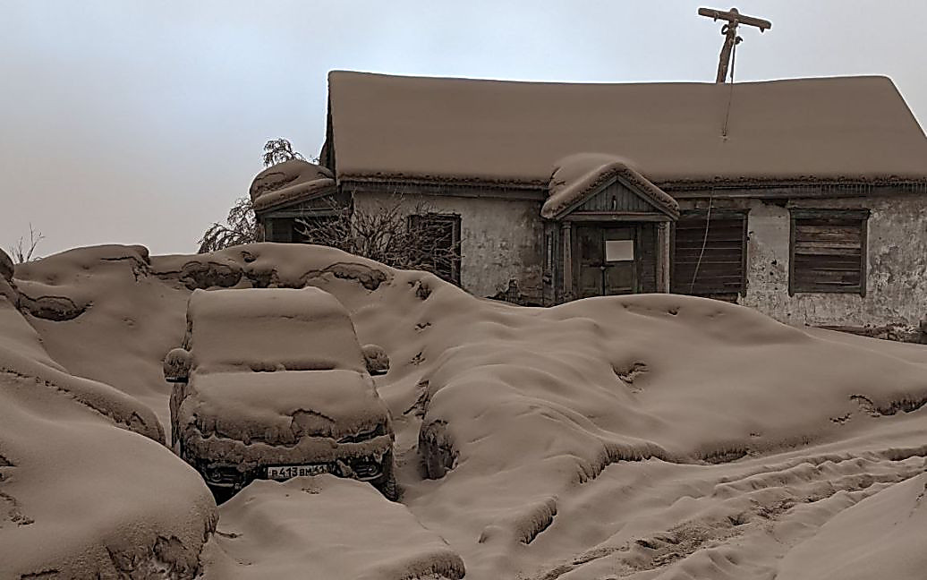 На Камчатці лютує вулкан, росіяни копирсаються у попелі і без сонця: відео життя у чорно-білому кольорі