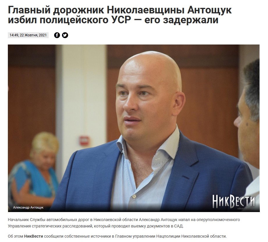 У вересні 2019 року суд повторно постановив поновити Олександра Антощука на посаді начальника Служби автомобільних доріг у Миколаївській області. Однак глава Укравтодору цього не зробив. Олександр Антощук повернувся на роботу в січні 2021 року – після відповідного рішення Верховного суду. А у жовтні 2021 року «Ніквесті» повідомили з посиланням на свої джерела, що Антощук нібито напав на оперуповноваженого Управління стратегічних розслідувань, який проводив виїмку документів у САД.