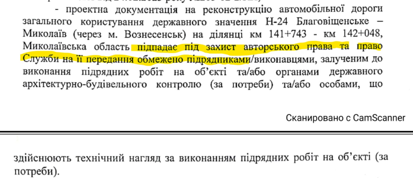 Також Антощук повідомив, що проектна документація по об’єкту, на який планують витратити 435 млн грн коштів платників податків з державного бюджету, «підпадає під захист авторського права та право Служби на її використання обмежено підрядниками…».