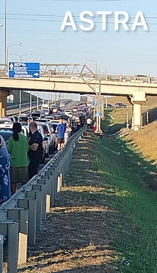 "Або пором, або додому. Куди вам ще!", - каже російський поліцейський людям, які стоять у пробці перед Кримським мостом.