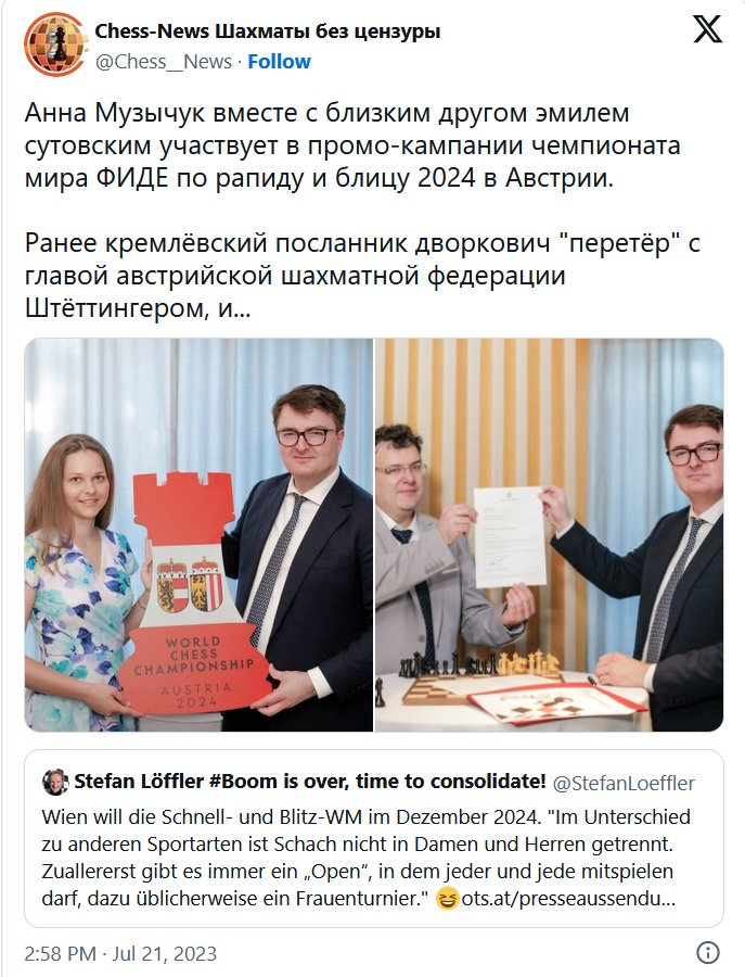 Нагадаємо, рік тому після початку повномасштабного вторгнення Марія та Ганна не стали підписувати відкритий лист президентові Федерації шахів України з проханням посилити санкції проти Росії та Білорусі.