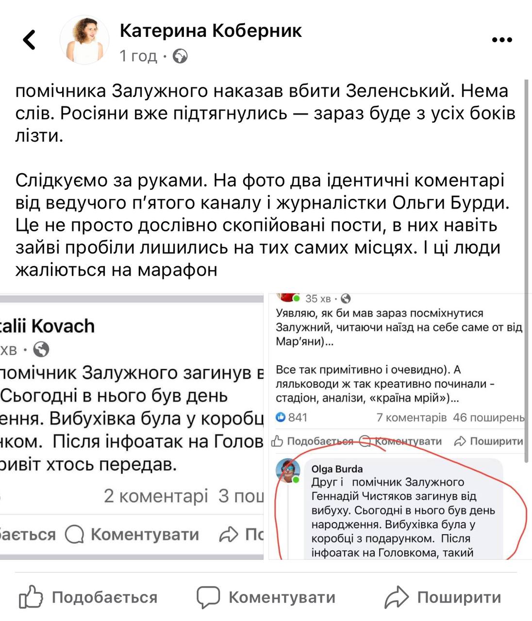 РосЗМІ миттєво скористались цією трагедію. Пропагандисти розганяють мотив про те, що вбивство помічника Залужного — "яскраве свідчення переділу влади в Україні".