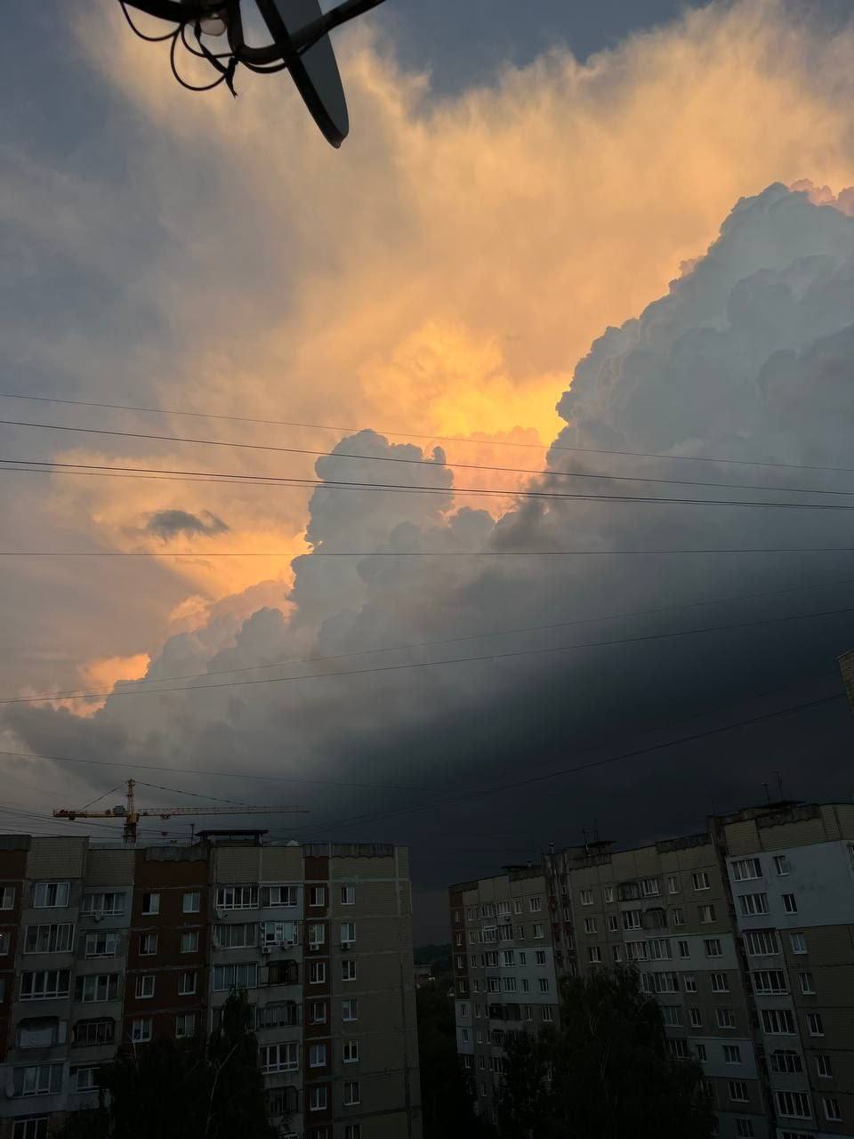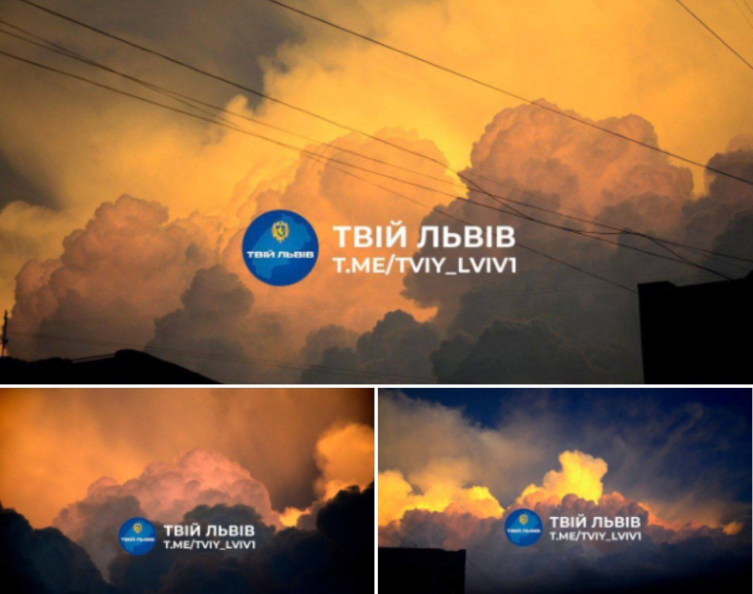Соцмережами шириться фото хмар у Львові, що змінюють колір. Містяни поспішили заявити, що це - хлоридні хмари. Ймовірно, вони утворились через забруднене повітря внаслідок учорашньої атаки по Тернополю.