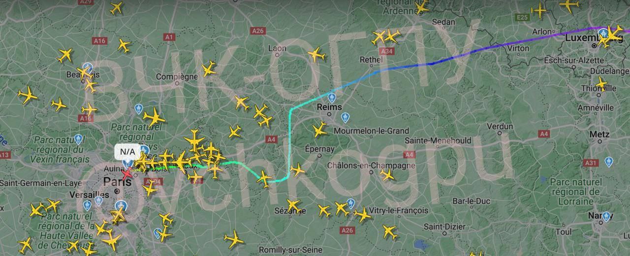 Цікавий момент: Дуров, зважаючи на все, вже знав, що в аеропорту на нього чекають жандарми - в останній момент він хотів відвести літак і не приземлятися в Парижі. За даними Flightradar24, Embraer Legacy різко змінив траєкторію польоту, перебуваючи над французьким містом Reims.
