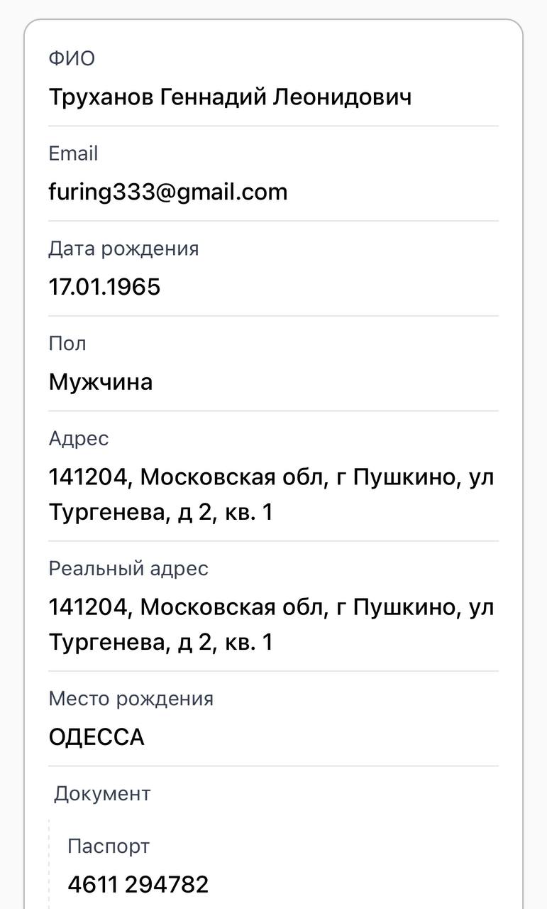 Він також додав, що інформація про серію і номер паспорта, прописку та дату видачі також узгоджується із відомостями, які раніше публікували українські журналісти.