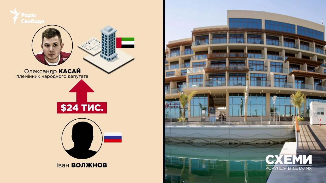 Загалом Олександр Касай має три квартири в Дубаї вартістю 770 тисяч доларів або 27 мільйонів гривень. Усі – придбані під час повномасштабного вторгнення Росії. Він здає їх в оренду, що приносить йому понад 65 тисяч доларів на рік.
