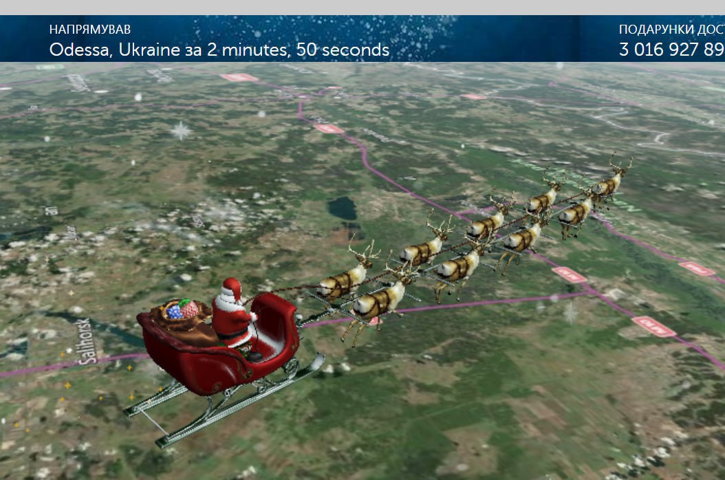 На сайті https://www.noradsanta.org/en/ можна в режимі реального часу спостерігати за переміщеннями Санта-Клауса.