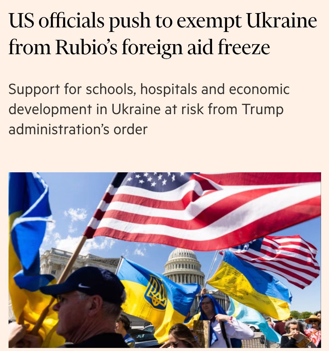 Тим часом FT пише, що дипломати з Бюро у справах Європи та Євразії Держдепартаменту США попросили держсекретаря США Марко Рубіо повністю виключити Україну із директиви, яка набула чинності у п'ятницю, 25 січня.
