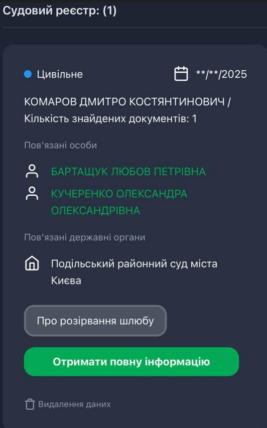 "Розлучаються... Знайшли інформацію в реєстрах, що на розлучення подав саме телеведучий ще 1 січня 2025 року", - зазначив Беспалов.
