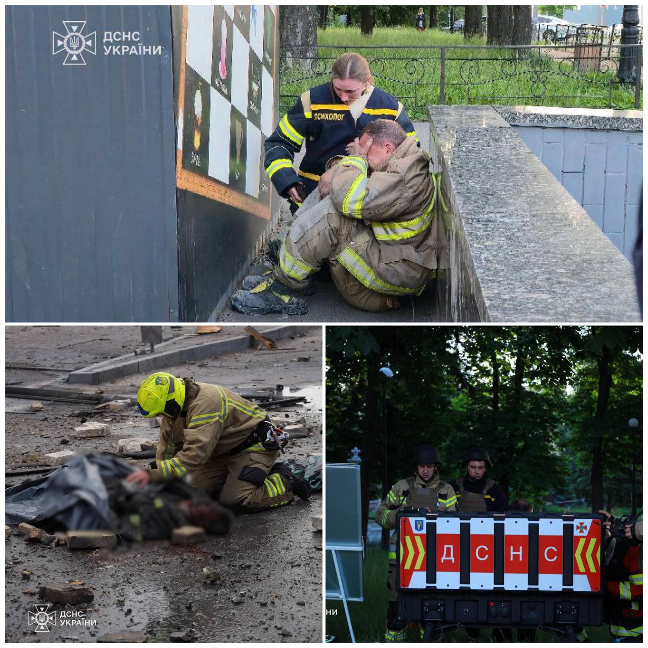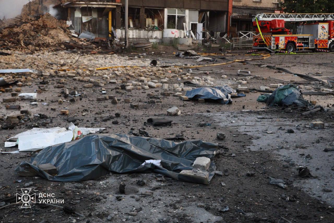 Під час розбору завалів після нічної атаки троє рятувальників загинули. Інші – в лікарні з тяжкими пораненнями. Загинули Павло Єзгор, Данило Скадін, Андрій Ременний. Троє працівників ДСНС загинули через повторний вибух на місці прильотів.