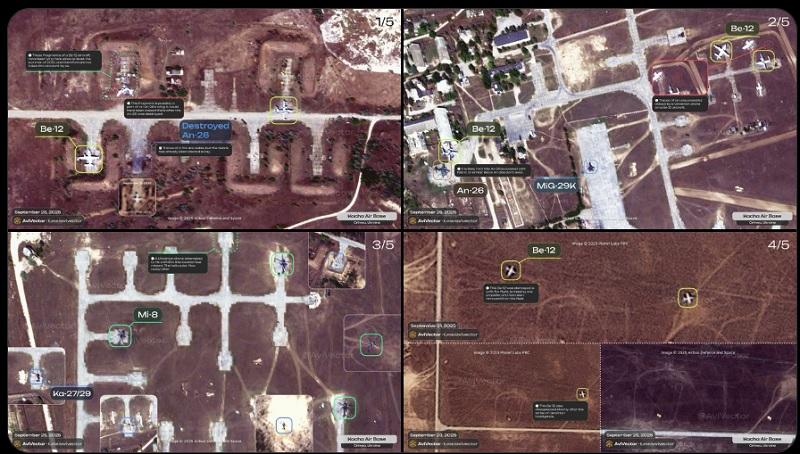 На знімку від 25 вересня зафіксовано п’ять літаків Бе-12, один Ан-26, три МіГ-29К, чотири вертольоти Мі-8 та чотири Ка-27/29.