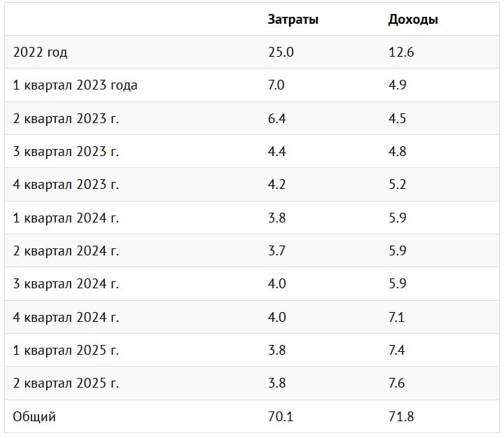 За даними Мінпраці, у першому кварталі 2025 року держава виділила на допомогу біженцям 3,8 млрд крон (156 млн євро). Стільки ж було витрачено й у другому кварталі. Таким чином, за перше півріччя сума становила 7,6 млрд крон (312 млн євро). Що ж до надходжень від українців-біженців, то у першому кварталі вони склали 7,4 млрд. крон (304 млн. євро), а в другому — 7,6 млрд. крон (312 млн. євро), тобто загальна сума за перше півріччя цього року склала 15 млрд. крон (616 млн. євро).