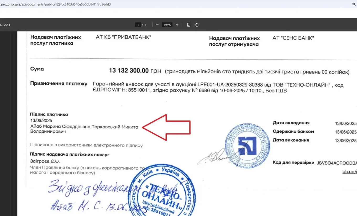 Цікаво, що фінансові документи для Марини Айаб підписував Микита Тарковський — колишній юрист дружини Максима Микитася. Він раніше керував компаніями, пов’язаними з оточенням ексдепутата. Це підсилює підозри у можливому неформальному впливі Микитася на процес приватизації.