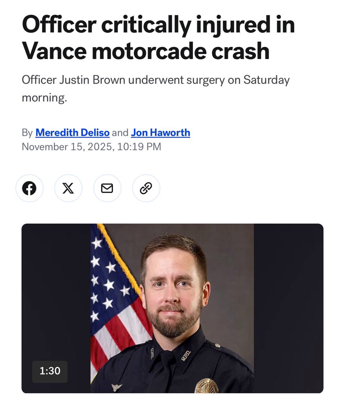 Директор з комунікацій Департаменту безпеки штату Теннессі Джейсон Пак розповів, що швидка допомога, яка входила до складу кортежу, також зупинилася та надала працівнику поліції негайну медичну допомогу.