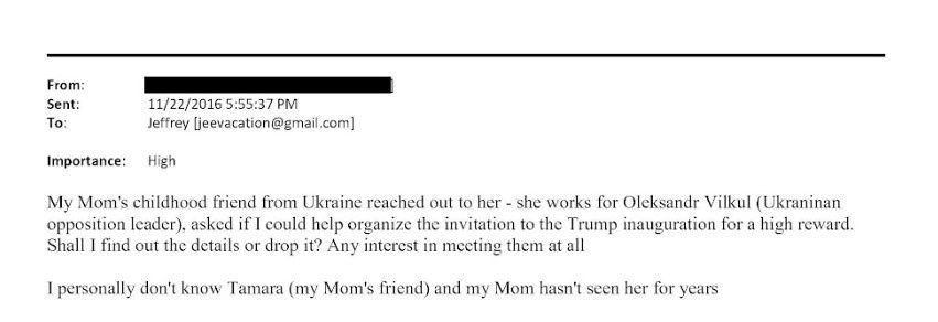В одному з листів 2016 року невідомий автор (ім'я приховано) звертається до Епштейна з проханням допомогти отримати для Вілкула запрошення на інавгурацію Дональда Трампа. За це пропонувалася «висока винагорода».