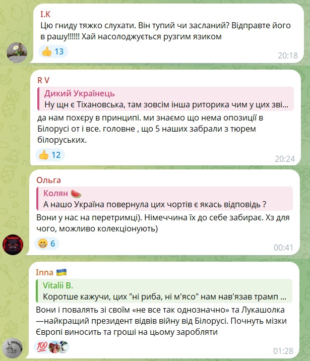 Реакція аудиторії після перегляду відео більше ніж прогнозована. Українці у коментарях "горять" від безхребетності білоруських опозиціонерів. Чимало коментарів-вибачень від самих білорусів.