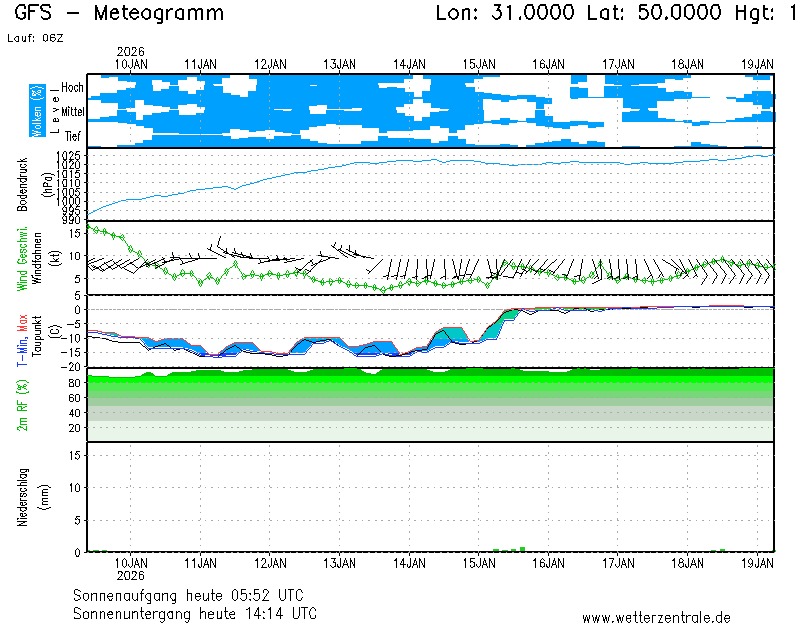 У столиці без істотних опадів, але з морозом та ожеледицею. Вночі —16°C, при проясненнях до -18°C, вдень —10...-12°C.