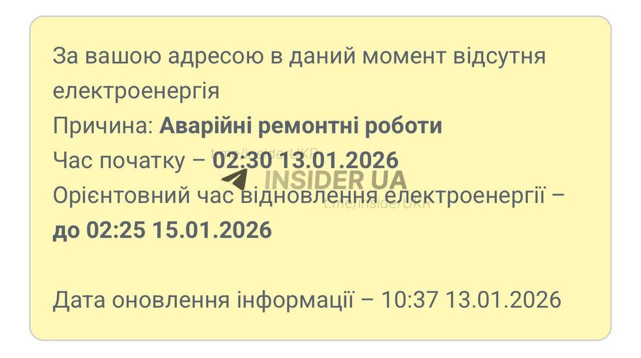 Канал також оприлюднив орієнтовний час відновлення енергопостачання, попередивши, що ситуація може змінитися.