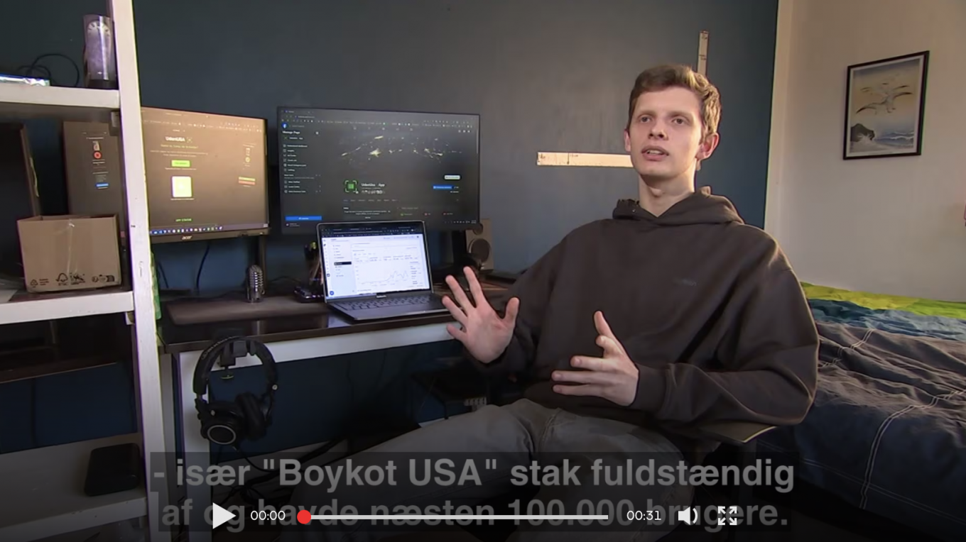 Функціонал застосунку дозволяє сканувати штрихкод товару, дізнаватися країну походження продукту та підбирати альтернативи, не пов’язані зі США. Станом на зараз UdenUSA посідає четверте місце за кількістю завантажень у данському App Store, випереджаючи низку глобальних сервісів.
