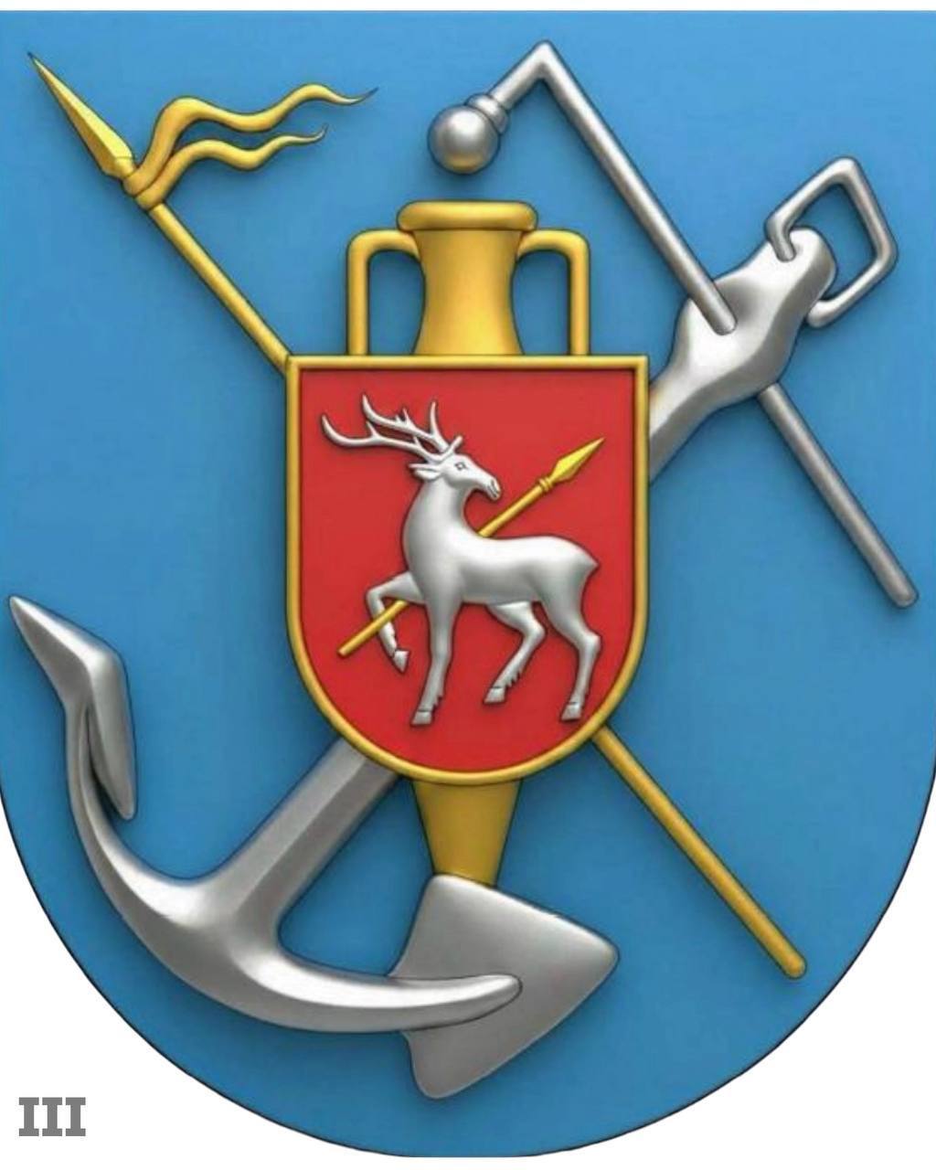 - "Синтез традицій": Проєкт пропонує складну композицію зі срібним оленем, що тримає спис (відсилка до Буго-Гардівської паланки та символіки 123-ї бригади ТрО). Навколо розташовані антична амфора, козацький спис та якір, що поєднує військову звитягу з морською історією регіону.