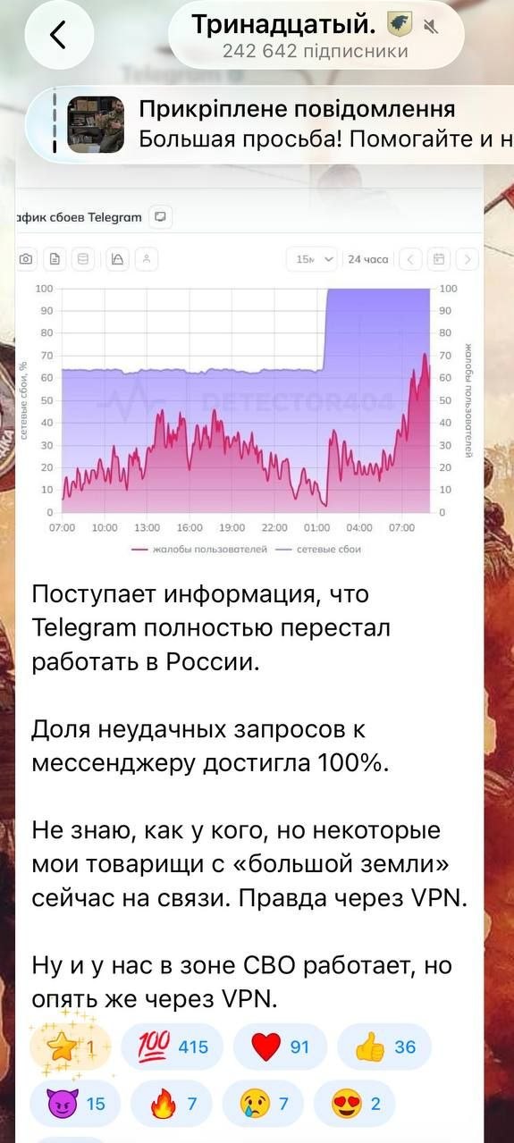 Telegram повністю ліг у Росії. Навіть за допомогою VPN неможливо зайти у цей месенджер.