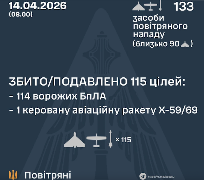 У ніч на 14 квітня 2026 року російські окупаційні війська здійснили черговий масштабний обстріл українських територій. Ворог застосував комбіновану тактику, випустивши як ракетне озброєння, так і велику кількість ударних безпілотників різних модифікацій. Про це повідомили у Повітряних силах передає FaceNews.ua