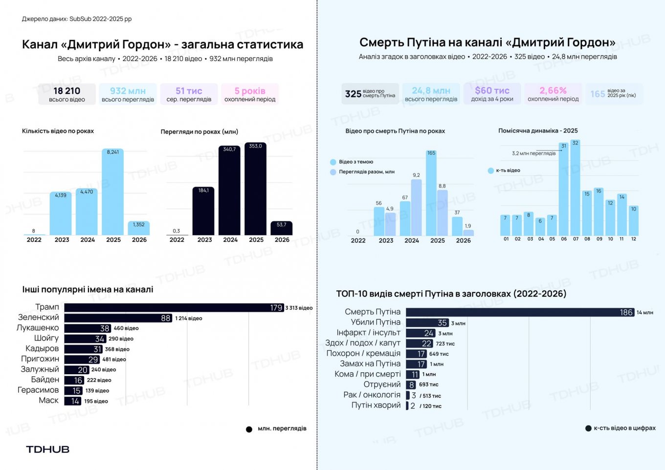 - 325 разів смерть Путіна згадувалася безпосередньо в назвах відео.