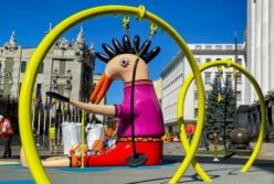 Возле Офиса президента на Банковой установили детскую площадку по мотивам произведений всемирно известной украинской художницы Марии Примаченко.