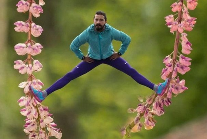 В интернете набирает популярность фотография белки, которая балансирует в шпагате между двумя ветками во время перекуса.
