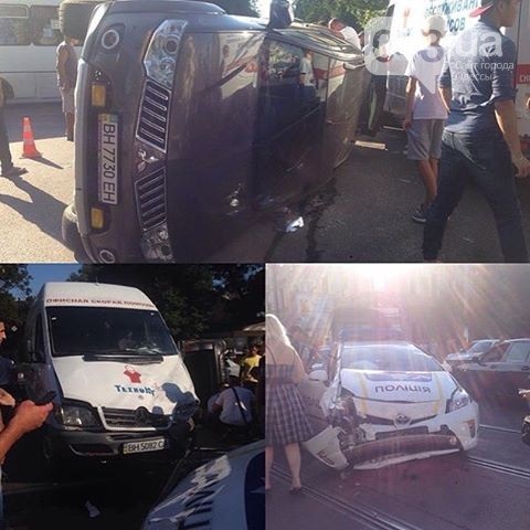«Полиция неслась с мигалками по Тираспольской и ударила в бок проехавший перекресток внедорожник (Mitsubishi Pajero, – ред.). Внедорожник перевернулся, плюс пострадал микроавтобус (Mercedes Sprinter, – ред.) «, – цитирует очевидцев издание 0482.